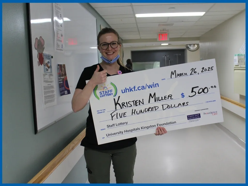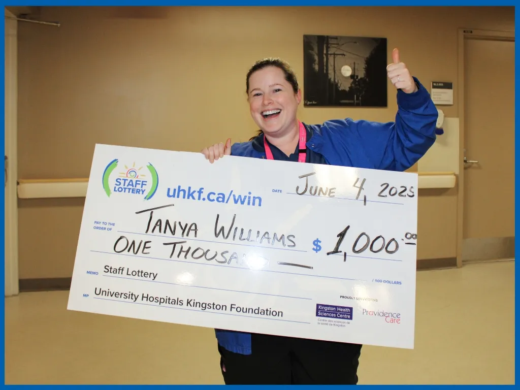 Funds from the staff lottery will be shared by Kingston Health Sciences Centre and Providence Care and directed back in support of patient care.